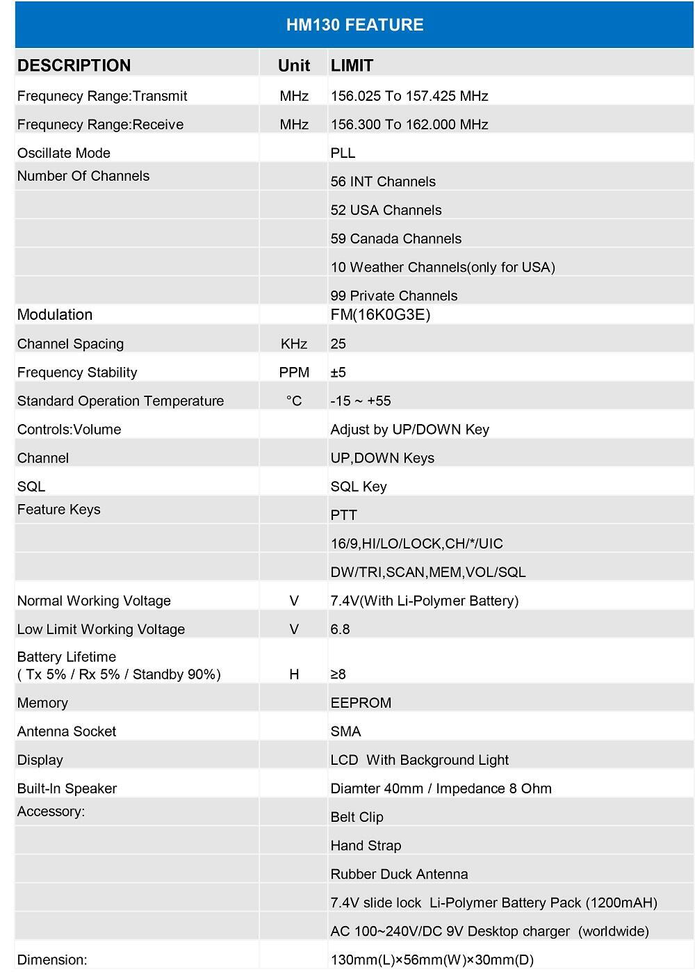 Himunication - HM130 Bærbar VHF Radio 6w