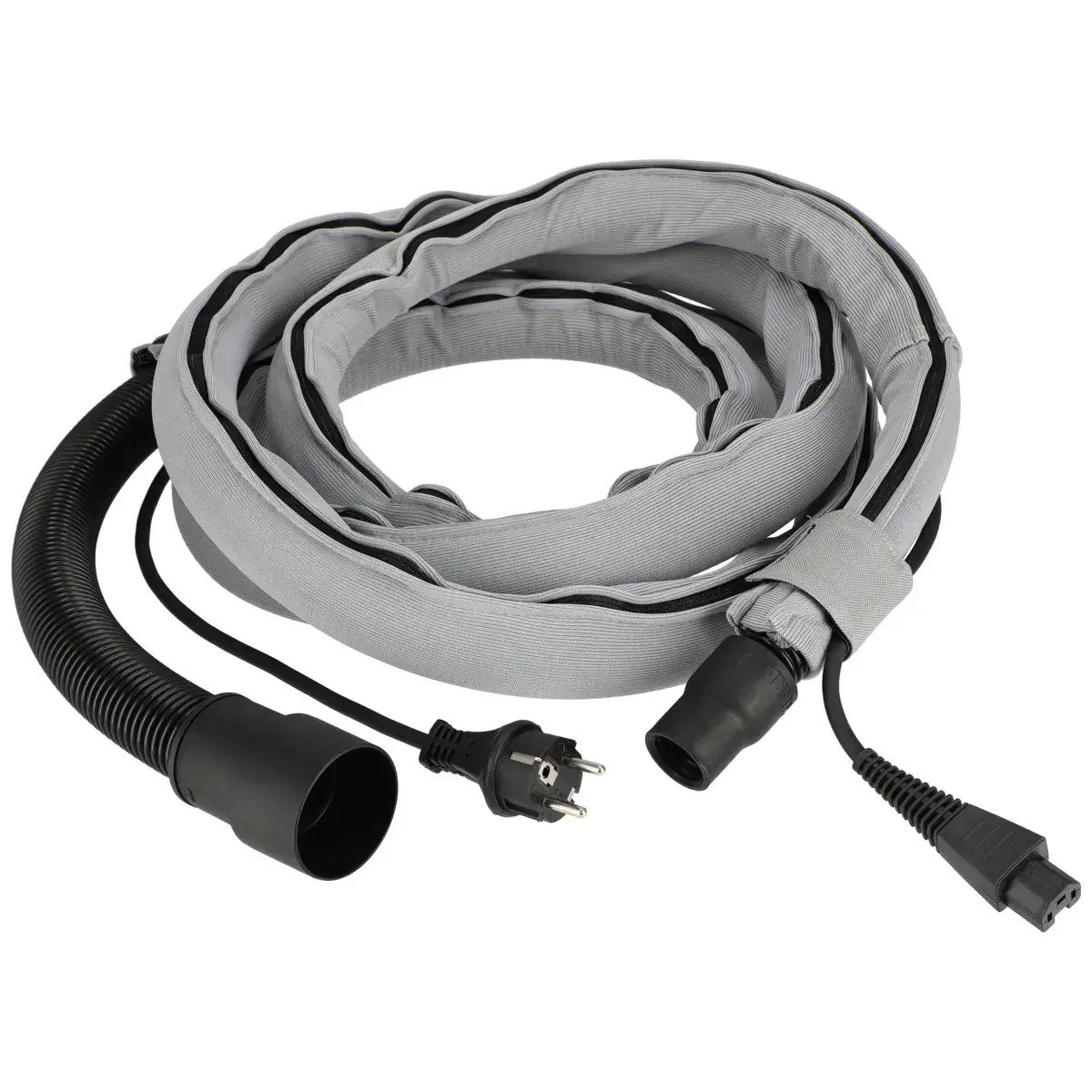 Forudsamlet slange med stik og CE 230V kabel i en holdbar ærme. Ærmet gør håndteringen lettere og beskytter arbejdsfladen mod ridser. Designet til brug med Mirka® DEROS, Mirka® DEOS og Mirka® LEROS. Elektrisk ledende (≤ 10⁶ Ω/kvadrat).